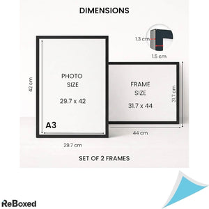 edihome A3 Photo Frames (2 Units) este un set de doua rame foto tip A3 (29.7 x 42 cm), concepute pentru afisarea si pastrarea in siguranta a fotografiilor, posterelor, diplomelor sau altor documente tiparite. Cu un design elegant si rama de lemn neagra, acest set este potrivit pentru acasa, birou, sala de sedinte, hol sau camera de studiu.