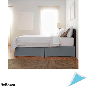 Include o fusta de pat queen-size in gri inchis; masoara 152 x 203 x 41 cm cu o draperie de 41 cm.