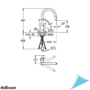 Adauga stil, flexibilitate si performanta chiuvetei tale de bucatarie cu bateria GROHE Get, echipata cu dus extractibil si doua tipuri de jet. Comutarea intre pulverizare delicata si jet puternic se face printr-un simplu buton, fiind ideala pentru spalarea legumelor, vaselor sau curatarea usoara a chiuvetei. Tehnologia EasyDock permite retragerea lina a dusului inapoi in corpul bateriei, iar spatiul generos de sub pipa inalta faciliteaza umplerea vaselor voluminoase. Pivotarea la 360° si montajul rapid cu sistemul QuickMount fac din acest model alegerea perfecta pentru bucatarii moderne.