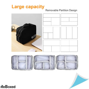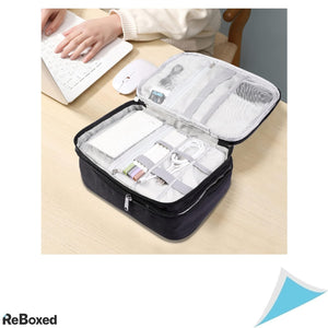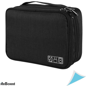 Pastreaza-ti accesoriile electronice in ordine, protejate si mereu la indemana cu geanta organizator AiQInu XXL. Cu un design pe 3 straturi si compartimente ajustabile, aceasta geanta ofera spatiu generos pentru cabluri, baterii externe, incarcatoare, carduri SD, casti, camere mici si multe altele.