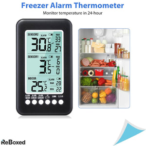 Acest termometru de interior dispune de 3 zone de afisare pe ecran LCD si masurare : temperatura ambianta (a bazei) precum si temperaturile transmise de 2 senzori. Monitorizarea frigiderului sau a unei incaperi, este acum foarte usor de realizat.