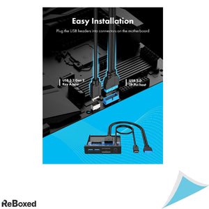 Instalarea este simpla in bay-ul de 3.5’’ sau 5.25’’ (cu adaptor), iar designul robust include protectii la supracurent, supratensiune si scurtcircuit pentru siguranta maxima. Compatibil cu Windows, acest hub este solutia ideala pentru gameri, creatori de continut si orice utilizator care isi doreste performanta si acces rapid la porturile esentiale.