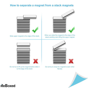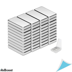 Cei 40 de magnetii din neodim sunt de forma dreptunghiulara, cu dimensiunea 20 x 10 x 3 mm. Neodim-ul este unul dintre cele mai puternice elemente magnetice cunoscute, si este excelent pentru utilizarea in proiecte de bricolaj.