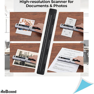 Acest scanner este compact, usor de purtat, poate fi luat chiar si in calatorii. Rezultatele scanarilor sunt salvate pe un card SD (in pachet este inclus si un card de 16GB - capacitatea maxima suportata este 32GB). Scaneaza color sau monocromatic, atat imagini, cat si documente, reviste, carti, etc.