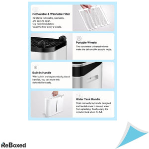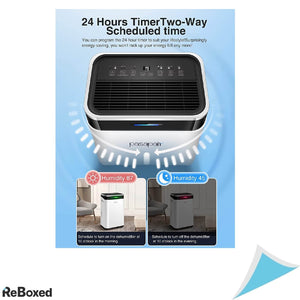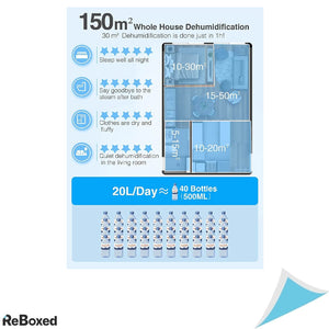 Dezumidificatorul este capabil sa elimine pana la 20 de litri de apa, in 24 ore si dispune de un volum al rezervorului de 6.5 litri. Este potrivit pentru incaperi intre 30 si 150 metri patrati si ajusteaza umiditatea, incepand de la 30% si pana la la 85% pentru a va mentine casa confortabila si pentru a va proteja sanatatea.