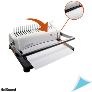 Aparat de indosariat compact pentru legare cu spira din plastic cu 21 de inele. Aparatul poate fi folosit ca si perforator, pentru prinderea documentelor in caiete mecanice cu 4 inele. Capacitate de perforare: 12 coli (80 g/mp) sau o coala laminata de max. 230 g/mp. Capacitate de indosariere: 350 coli. Aparatul de indosariat foloseste spire cu dimensiuni intre 6 si 38 mm