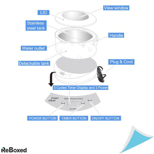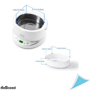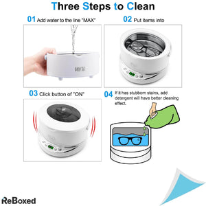 Aparatul de curatare digital, cu ultrasunete, lucreaza la o frecventa de pana la 42 KHz si curata temeinic murdaria chiar si in locurile cele mai mici, in doar cateva minute. Nu deteriorizeaza obiectele care sunt introduse in baia de ultrasunete.