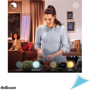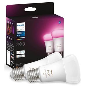 Transforma iluminarea casei tale cu Philips Hue White and Colour Ambiance A60, un set de doua becuri inteligente E27, fiecare oferind o luminozitate de 800 de lumeni si o gama completa de culori si nuante de alb pentru a crea atmosfera perfecta pentru orice ocazie.