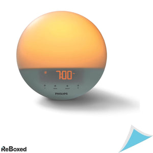 Lampa Philips SmartSleep Wake-up Light HF3531/01 este un dispozitiv avansat care combina terapia cu lumina si sunet pentru a oferi o trezire naturala si placuta. Aceasta utilizeaza o simulare a rasaritului soarelui, crescand treptat intensitatea luminii, si ofera o selectie de sunete naturale pentru a completa experienta.