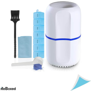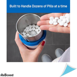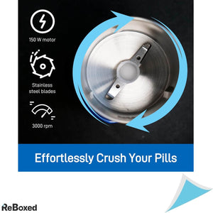 Pill Mill Electric Crusher este un dispozitiv automat de zdrobire a pastilelor, ideal pentru persoanele cu dificultati la inghitit sau cu forta de prindere redusa. Zdrobeste pastilele rapid in pudra fina pentru o inghitire usoara, ajutand la digestie si absorbtie. Cu lame din otel inoxidabil, poate manevra peste 100 de tablete, iar capacul etans previne risipirea. Include o perie pentru curatare, un organizator de pastile, o lingurita si o carpa, facandu-l usor de utilizat pentru oameni si animale de companie.