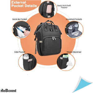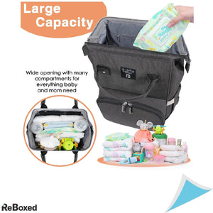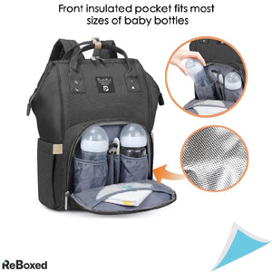 Spatios si Organizator: Cu numeroase buzunare si compartimente, acest rucsac permite organizarea tuturor esentialelor pentru bebelusi, cum ar fi sticlele, hainele de schimb, pampersii, servetele umede, etc., in compartimente dedicate.