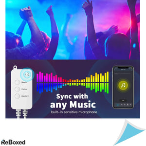 Banda LED RGB SMD 5050, ultra-lunga, constand in 2 benzi a cate 10 metri. Banda LED RGB 2x10m, este usor de instalat si suficient de lunga, pentru a ajunge in intreaga incapere si astfel sa iti lumineze casa cu LED-uri foarte luminoase. Setări multiple : luminozitate, sincronizare, culori si moduri de lumina. Dispune de absolut toate tipurile de conexiuni : prin Wi-Fi (2.4 Ghz), Bluetooth, Telecomanda si chiar sincronizare dupa muzica ambientala (controllerul dispune de un microfon sensibil pentru sunete).