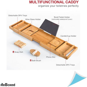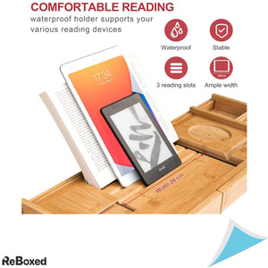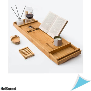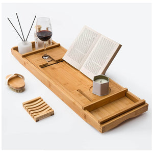 Suportul extensibil din bambus este un accesoriu elegant si practic, destinat utilizarii in timpul baii. Este creat pentru a fi asezat de-a lungul cazii, oferind o platforma stabila pentru a-ti tine obiectele esentiale in timpul unei bai relaxante. Materialul din bambus este rezistent la apa, durabil si ecologic, fiind o alegere populara pentru produse de baie.