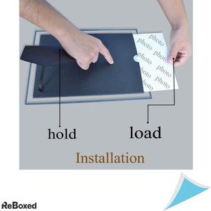 Dimensiuni: Dimensiunea totala a ramei este de aproximativ 26 x 34.7 cm. Dimensiunea interioara a ramei este potrivita pentru A4. Incarcarea prin alunecare este convenabila pentru adaugarea de fotografii.