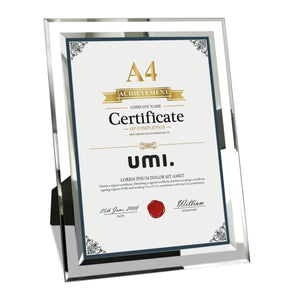 Calitate inalta: Fabricata din sticla reflectorizanta, care este clara si transparenta, cadrul de sticla va face ca fotografiile sau certificatele tale preferate sa straluceasca si sa iasa in evidenta.