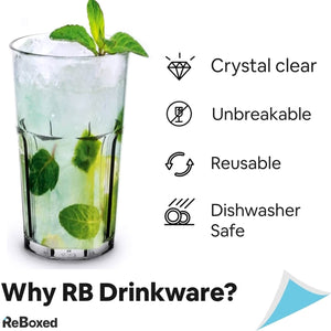 Sunt fabricate din plastic transparent, calitate premium. Sunt pahare elegante, nu se sparg, nu se crapa si aspectul lor este extrem de asemanator cu sticla, doar ca sunt mai usoare.