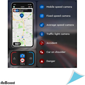Saphe Drive Mini este un dispozitiv inteligent care te ajuta sa ramai in siguranta pe drumurile din Europa. Cu un ecran color de inalta calitate, acest detector iti ofera alerte vizuale pentru camerele de viteza, accidente si alte pericole rutiere. Se conecteaza automat la aplicatia Saphe Link prin Bluetooth, fara a necesita un abonament, si se activeaza automat la pornirea vehiculului. Cu o autonomie de pana la 2 luni, este usor de instalat si utilizat, fara a distrage atentia de la drum
