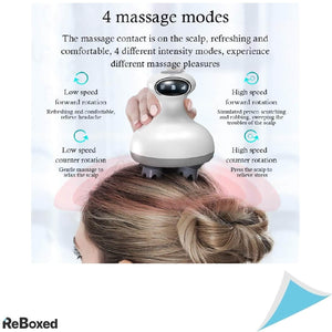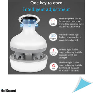 Masajerul electric portabil SLuB ofera un masaj profund al scalpului cu 28 de noduri independente si 84 de contacte de masaj, capabile de un masaj rotativ de 360°, care ajuta la cresterea parului, curatarea scalpului, promovarea circulatiei sanguine, ameliorarea presiunii si durerii de la nivelul capului, asigurand confortul si ajutand la adormire rapida.