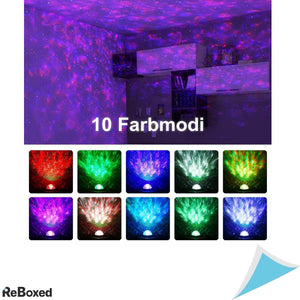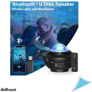 Proiectorul LED pentru cer înstelat, are o proiecție dinamică cu rotație și poate afișa pana la 10 culori. Stelele și norii strălucitori sunt proiectați dinamic pe tavan sau pe perete, creând efecte de exceptie, colorate, cu cer instelat și valuri de ocean. Valurile și stelele pot fi redate individual sau împreuna. Poate fi folosită ca lumină de veghe, o lumină ambientală deosebita.