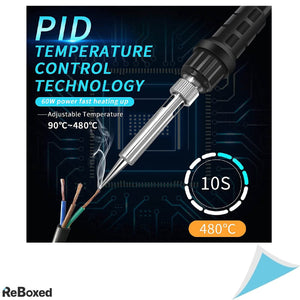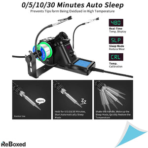 Aceasta statie de lipit atinge temperatura de 300 de grade in doar 10 secunde. Intervalul temperaturii de lucru este intre 90 si 480 grade, reglabila. Temperatura este afisata pe un ecran LED.
