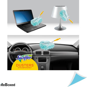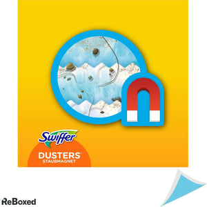 Swiffer Duster este instrumentul care capteaza si blocheaza praful, parul si alergenii cauzati de acarieni, dar si cei cauzati de pisici si caini, de pe suprafete datorita miilor de fibre pufoase.