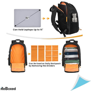 Trepiedul camerei poate fi atașat la partea inferioară a rucsacului. Dispune de buzunar dedicat pentru laptop/tabletă de 15"