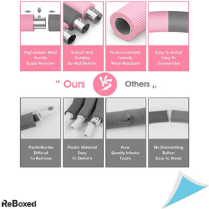 Material din componenta Hula-Hoop: tub interior din otel inoxidabil, cu grosimea de 0.8 mm asigura stabilitatea iar suprafata fabricata din spuma ingrosata de cauciuc, asigura o prindere ferma si placuta. In comparatie cu designul tubului de plastic, acesta este mai durabil si nu se deformeaza.