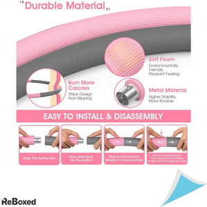 Usor de asamblat si transportat: hula hoop-ul are 8 parti detasabile si foloseste un design stil catarama, din otel, foarte elastic. Depozitarea si asamblarea sunt usoare. Poate fi folosit acasa, la birou, in sala de sport sau in parc.