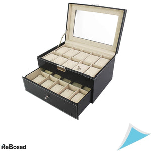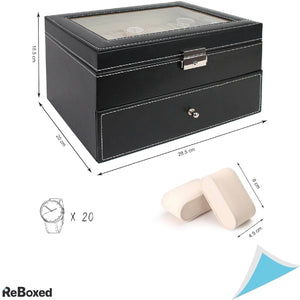 Organizeaza-ti colectia de ceasuri cu stil si eficienta folosind cutia Todeco Watch Box. Aceasta cutie eleganta si practica este conceputa pentru a gazdui pana la 20 de ceasuri, oferind un sertar suplimentar pentru bratari, inele si alte bijuterii mici.