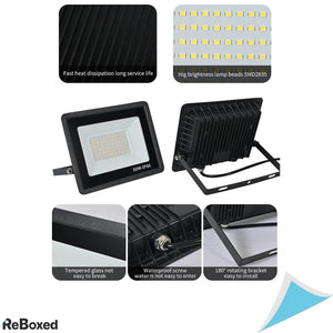Treoir LED Floodlight de 50W este un reflector exterior ideal pentru curti, gradini, garaje sau santiere. Echipat cu LED-uri SMD2835 de inalta calitate, ofera un unghi larg de iluminare de 120° si o lumina alba calda (3500K). Designul ultra-subtire si corpul din aluminiu turnat asigura o disipare eficienta a caldurii si durabilitate extinsa.