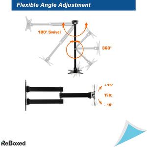 Suportul de perete capabil de inclinare de +15/-15 grade, rotire la 180°, rotire la 360°, pentru o experienta de vizionare maxima. In pozitia pliata, distanta intre perete si dispozitiv va fi de 4cm si poate fi extins pana la 39cm.