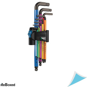 Setul 950/9 Hex-Plus Multicolour de la Wera este un set de chei in forma de L de inalta calitate, proiectate special pentru suruburile cu cap hexagonal. Acest set contine 9 chei cu dimensiuni metrice, care sunt codificate pe baza diferitelor culori pentru o identificare usoara si rapida. Cheile sunt fabricate din otel de inalta calitate, tratate termic si acoperite cu un strat BlackLaser pentru o durabilitate si rezistenta sporita.