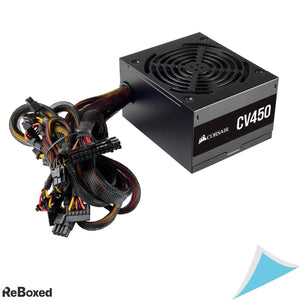 Corsair CV450, 450W, 80 PLUS Efficiency Bronze, PSU Form ATX, Sleveed, Zero RPM mode - NO, 1x EPS Connector, 1x Floppy connector, 2x PCI-E Connector, Plug Type EU, 7x SATA Connector, Dimensions: 150mm x 125mm x 86mm