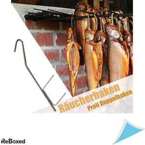 Cârligele de afumat Croch, de înaltă calitate, sunt fabricate din oțel inoxidabil si dispun de 2 varfuri ascutite pentru agatarea pestelui, carnii dar si a carnatilor. Perfect pentru : pastrav, anghila, macrou si hering.