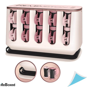 Trusa de bigudiuri electrice Remington PROluxe H9100, 20 de bigudiuri cu invelis catifelat, 2 marimi, Tehnologie OPTI heat, Invelis Grip tech Clipsuri ceramice incalzite, Incalzire rapida (Alb/Roz) | ReBoxed