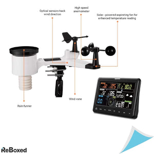 Statie Meteo Profesionala Wlan cu senzori exteriori, colector de ploaie, afisaj color Sainlogic 7in1 WS3500 | ReBoxed
