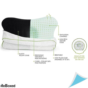 Forma special conceputa sustine curburile naturale ale gatului, facilitand o pozitie corecta si sanatoasa in timpul somnului. Ideal pentru persoanele cu dureri de gat, umeri sau pentru cei care petrec mult timp la birou.