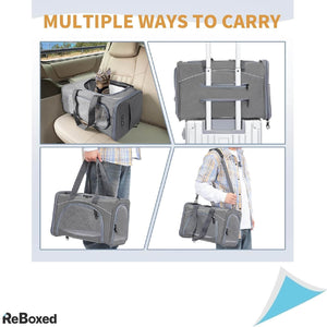 Petsfit Cat Carrier combina designul ergonomic si durabil cu caracteristici practice pentru transportul animalului tau cu usurinta. Materialul usoar, rezistent si impermeabil mentine interiorul uscat in diferite conditii, iar structura cu sasiu metalic mentine forma carrierului pentru siguranta si stabilitate. Pernele moi, detasabile si lavabile, asigura un spatiu confortabil pentru animalele tale pe durata calatoriei.