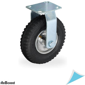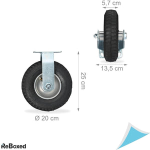Relaxdays Pneumatic Fixed Castor 2.50-4 este o roata fixa, robusta, cu anvelopa umpluta cu aer si placa de montaj din otel, conceputa pentru transportul facil al sarcinilor grele. Datorita constructiei rezistente si amortizarii eficiente, aceasta roata este ideala pentru utilizare in ateliere, depozite, spatii industriale sau gospodarie.