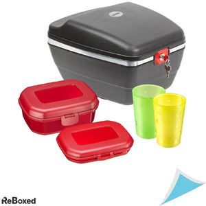 Westmark Gerda Touring Safe 5430GEE6 este setul ideal pentru excursii cu bicicleta, picnicuri, drumetii si plimbari lungi. Conceput pentru a se potrivi pe toate tipurile de portbagaje pentru biciclete, acest set versatil include 2 cutii pentru gustari si 2 cupe pentru bauturi, realizate din plastic rezistent si usor.