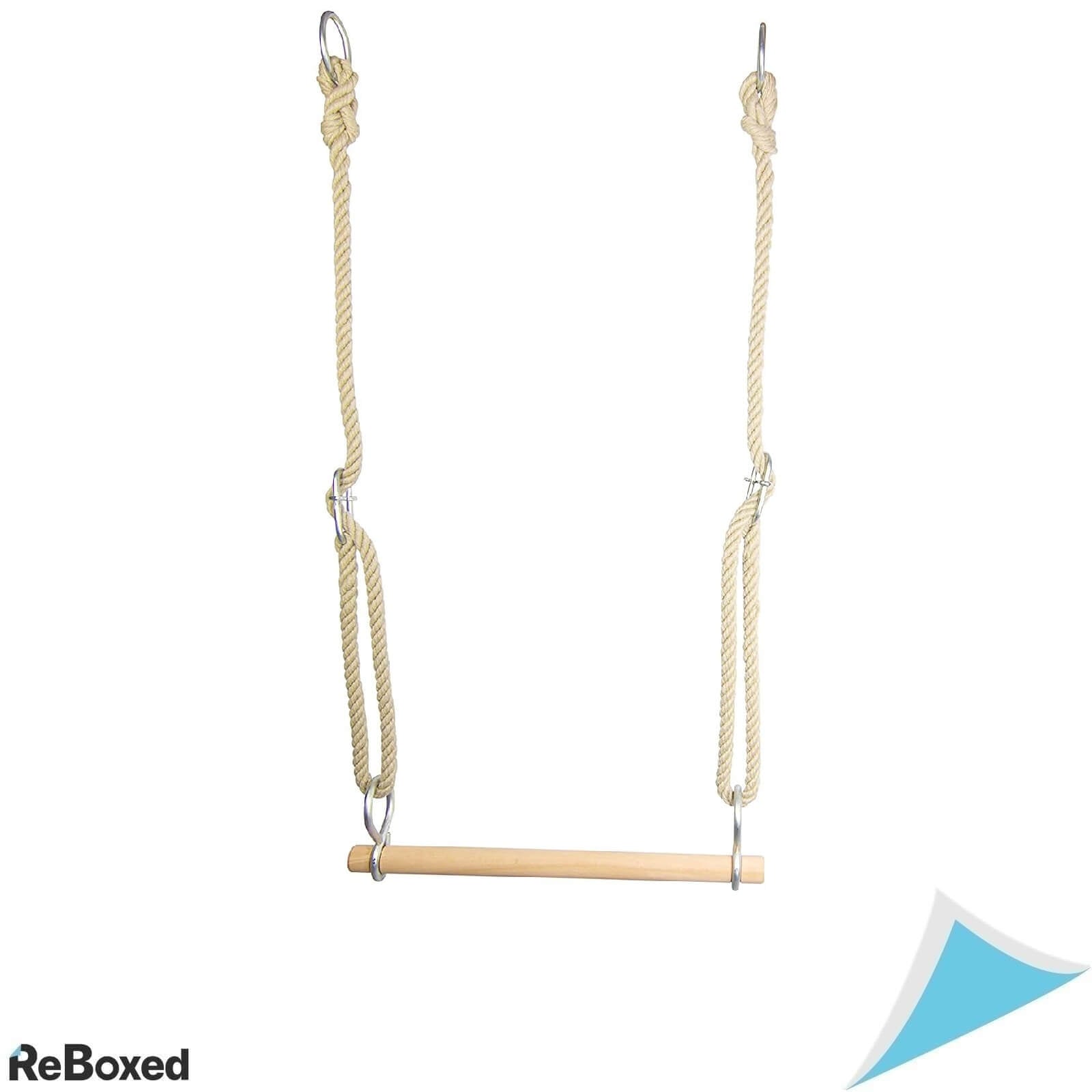 Montaj sigur: trapezul se ataseaza de carlige pentru leagan cu inele metalice (nu sunt incluse), inaltimea putand fi ajustata prin reglarea franghiei