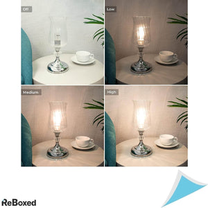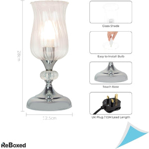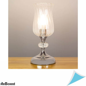 Lampa de masa Anika 62519 Hurricane combina eleganta cu functionalitatea, fiind ideala pentru birou, dormitor sau living. Dispune de baza tactila pentru aprindere/oprire si 3 trepte de luminozitate, permitand ajustarea intensitatii luminii in functie de nevoi. Designul cu efect cromat si lampa usor de instalat transforma orice spatiu intr-un decor modern si practic. Lampa este alimentata la retea, usor de folosit si potrivita pentru diferite tipuri de becuri compatibile.