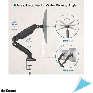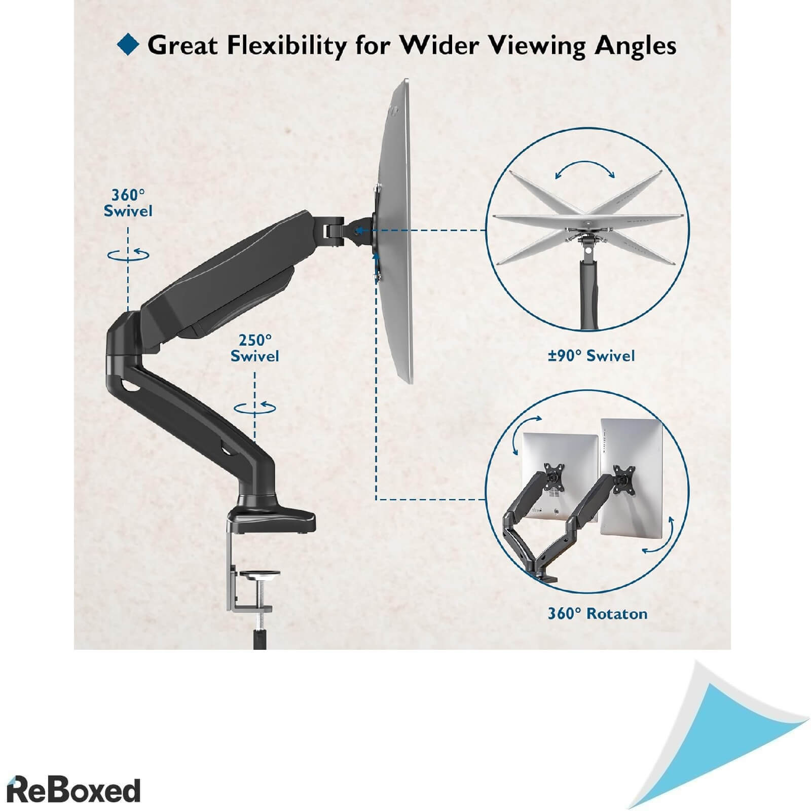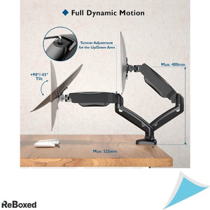 Suportul BONTEC Dual Monitor Arm este conceput pentru a sustine doua monitoare cu dimensiuni intre 13 si 32 inch, oferind flexibilitate completa pentru ajustarea pozitiei ecranelor. Bratele cu sistem cu arc pe gaz permit ridicarea, coborarea, inclinarea si rotirea monitoarelor cu miscari fluide, pentru o pozitie ergonomica si confortabila in timpul lucrului.