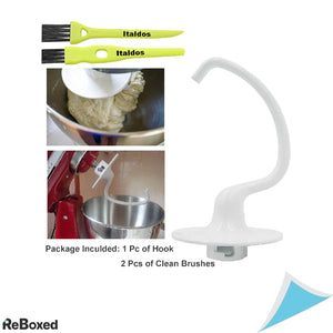 Carlig pentru framantat compatibil cu modelele KitchenAid K4SSWH, K5, K5A, K5SS, KSM5 (mixer 4.8L/5QT). Fabricat din aluminiu cu strat de nylon antiaderent, ideal pentru aluat de paine, pizza si produse de patiserie. Include 2 periute multifunctionale pentru curatare. Se curata usor in masina de spalat vase.