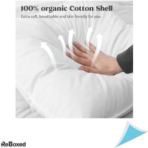 Husa exterioara din 100% bumbac permite circulatia aerului si previne acumularea umezelii, in timp ce structura ergonomica sustine confortabil capul si gatul.