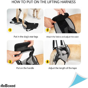 Dotoner Dog Lifting Harness este un ham de sustinere conceput special pentru a ajuta cainii cu mobilitate redusa sau care se recupereaza dupa rani. Acest ham ofera un suport bland si sigur pentru picioarele din spate, permitandu-ti sa ajuti patrupedul sa mearga, sa urce scari sau sa iasa din masina fara durere sau efort greu.