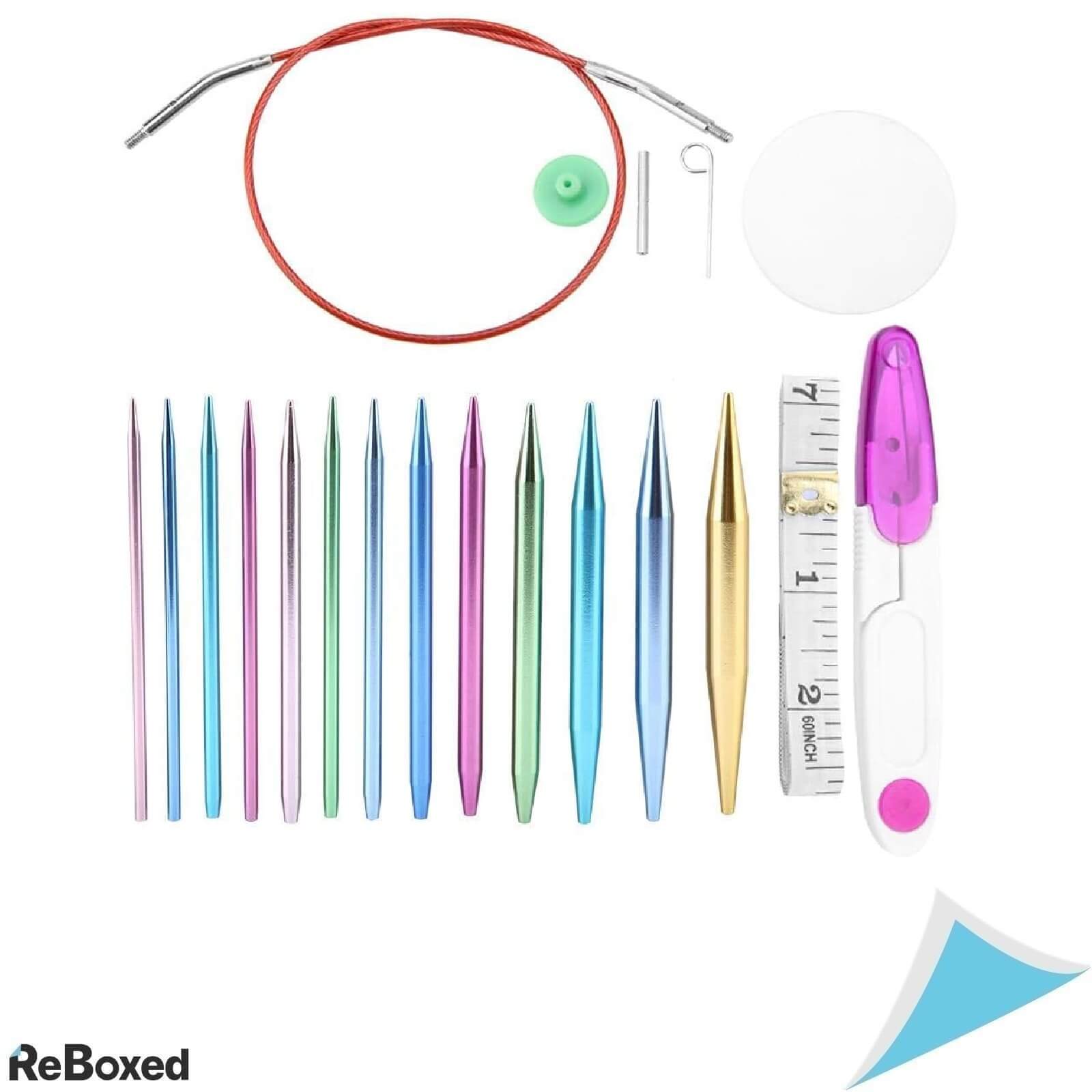 Setul de andrele circulare interschimbabile este solutia ideala pentru pasionatii de tricotat, de la incepatori pana la avansati. Acest kit complet include 13 perechi de andrele din aluminiu, cu dimensiuni cuprinse intre 2.75 mm si 10 mm, oferind flexibilitate maxima pentru o varietate larga de proiecte de tricotat.