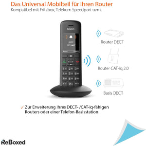 • Compatibilitate extinsa: functioneaza cu majoritatea bazelor Gigaset si routere DECT/GAP, inclusiv standardul CAT-iq 2.0 pentru apeluri HD-Voice.