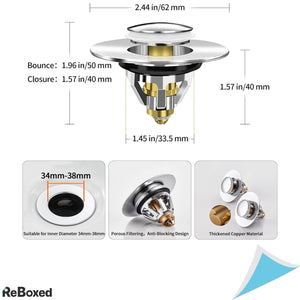 Dop de scurgere din otel inoxidabil, potrivit pentru gauri de scurgere cu diametrul de 34-38 mm.
