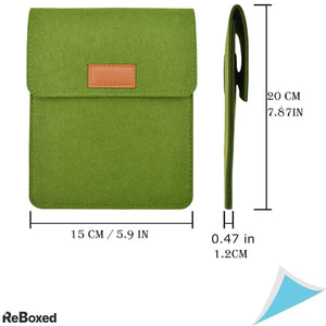 Dimensiune: 20 x 15 x 1.2 cm, material pâslă ecologica, compatibila cu majoritatea tabletelor și smartphone-urilor, inclusiv Amazon Kindle Paperwhite 5 sau 6".